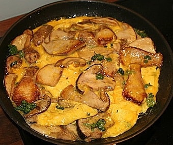 - Faites les revenir dans une poêle avec du beurre ou de l’huile. Battez les œufs avec le sel et le poivre, versez le contenu dans la poêle en répartissant les champignons de façon uniforme .
